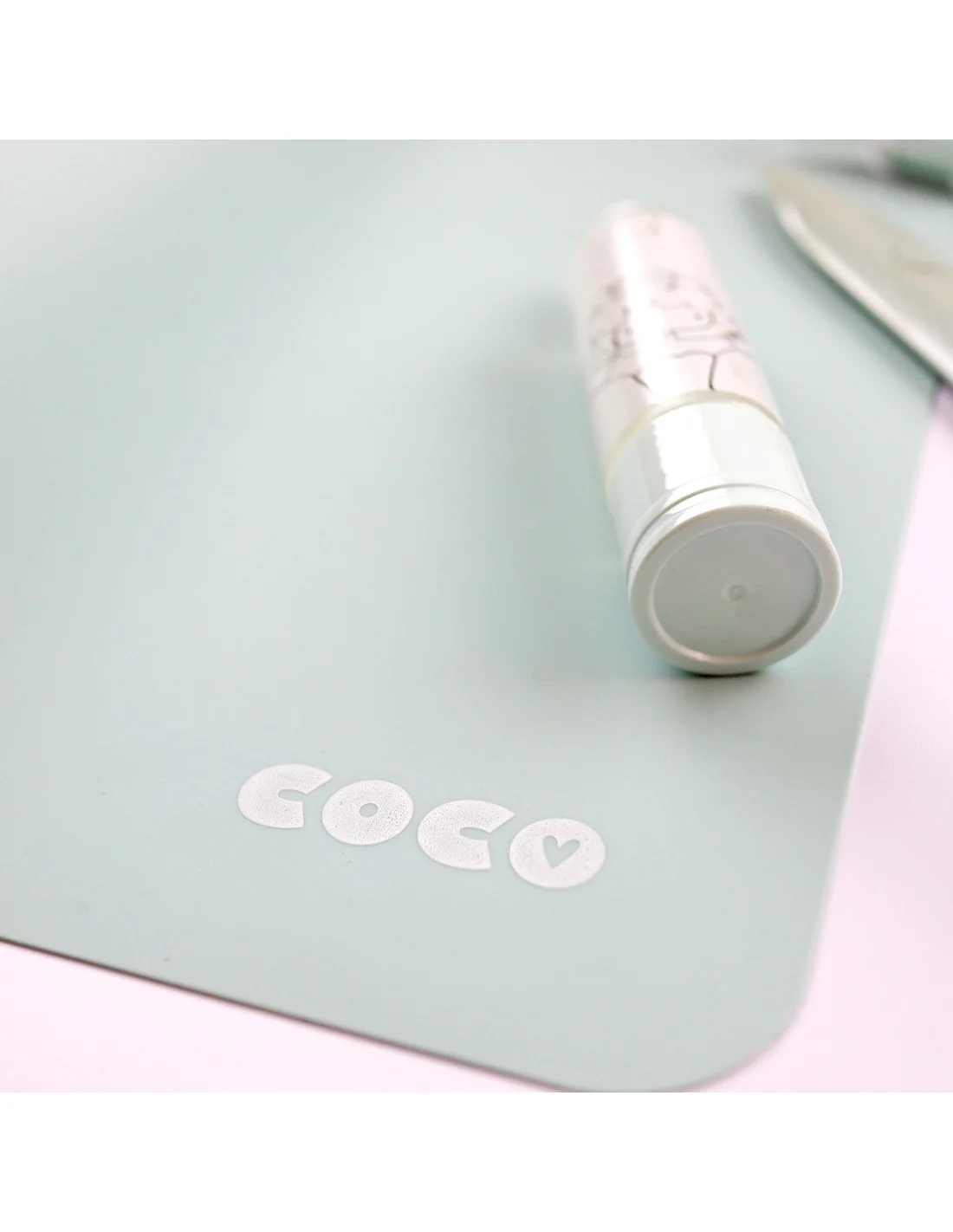 Alúa Cid ha diseñado para su línea Coco Basic este tapete de silicona en color verde menta para trabajar con pinturas, pegamentos y pastas.