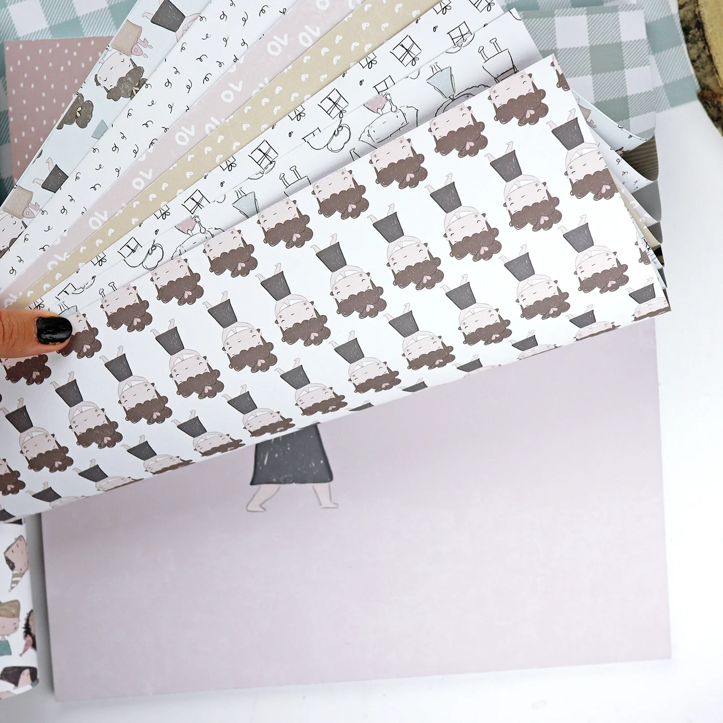 • 12 papeles de scrapbooking impresos a doble cara en 190gr