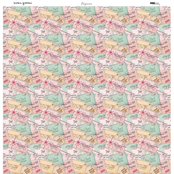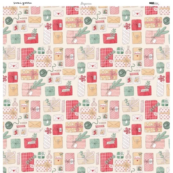 Bloc de 18 hojas (12 estampadas a doble cara y 6 a una cara) con 30 diseños diferentes creados por Sami Garra para su colección «Purpurina».