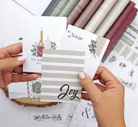El bloc de tarjetas y sólidos Mistletoe & Holly es un producto muy especial, porque incluye papeles sólidos para acompañar al bloc de 12″ de la colección, y también lleva papeles para cortar y convertir en tarjetas para tu Rita´s Diary, o pegar en tarjetas navideñas artesanales.