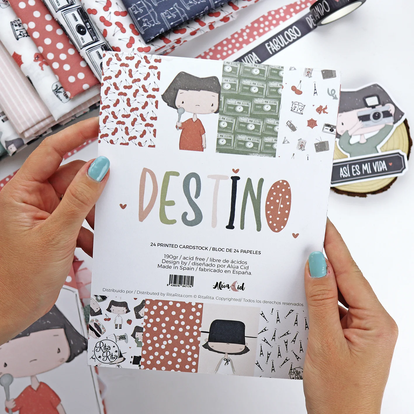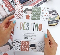 En concreto este bloc pertenece a la colección Destino, por lo que puedes completar los papeles con muchos más complementos aptos para manualidades y trabajos de scrapbooking llenos de personalidad, color y ternura, debido a su paleta de colores e ilustraciones.