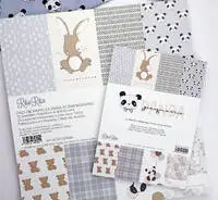 El bloc pequeño Panda azul para scrapbooking está encolado por la parte superior e incluye 24 papeles de scrapbooking, impresos a una cara, en 190gr.