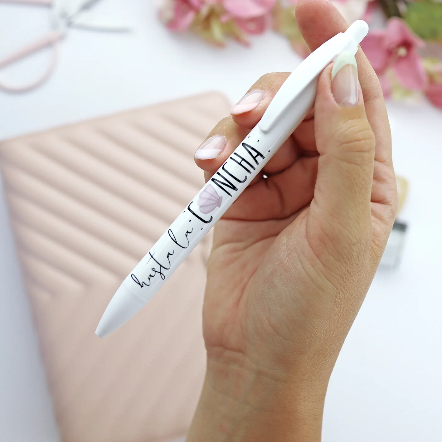 Está decorado con la frase que da nombre a la colección, y tiene a juego muchos elementos de la colección Hasta la concha.