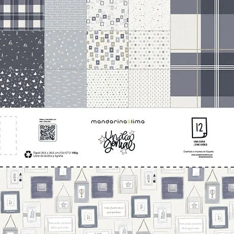 12 diseños en total con medida 30,5x30,5. Papel 190g libre de ácidos y ligninas.