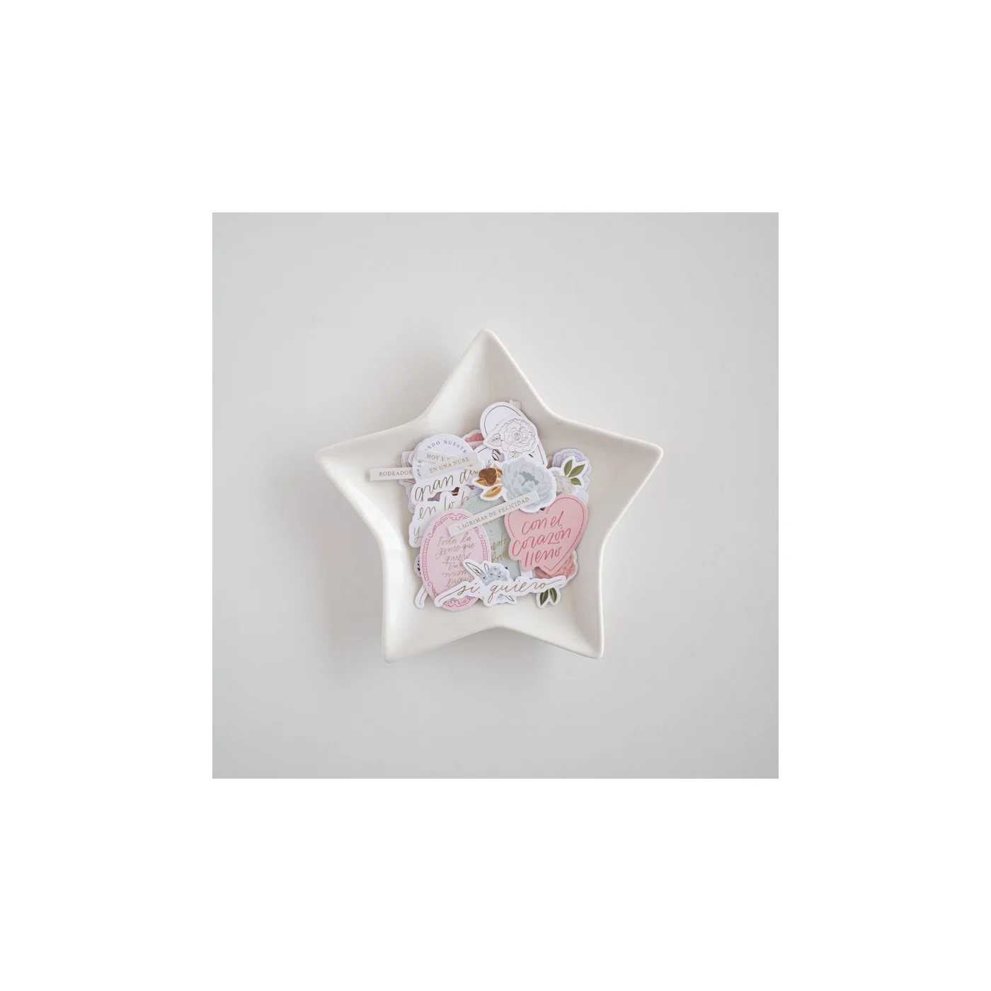 El pack consta de formas precortadas en papel offset de 300 grs con detalles en foil. El adorno favorito de la mayoría de las scraperas con el que podrás decorar todos tus proyectos.
