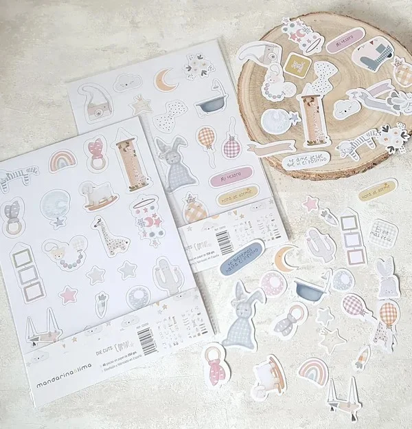 45 Figuras precortadas Impresas en papel de 250 gr. para enriquecer cualquier trabajo de scrapbooking y tarjetería.
