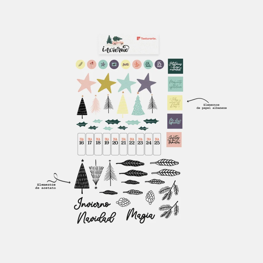 Elementos decorativos recortados en albanene y acetato impreso con 60 piezas, Die Cuts