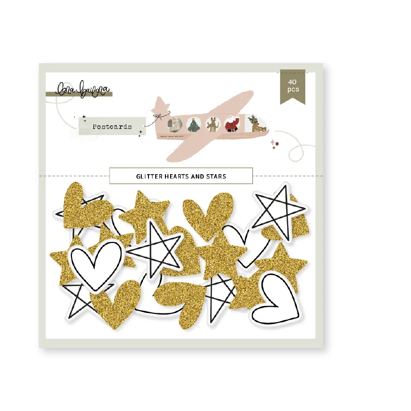 Estrellas y Corazones de Glitter Postcards Lora Bailora