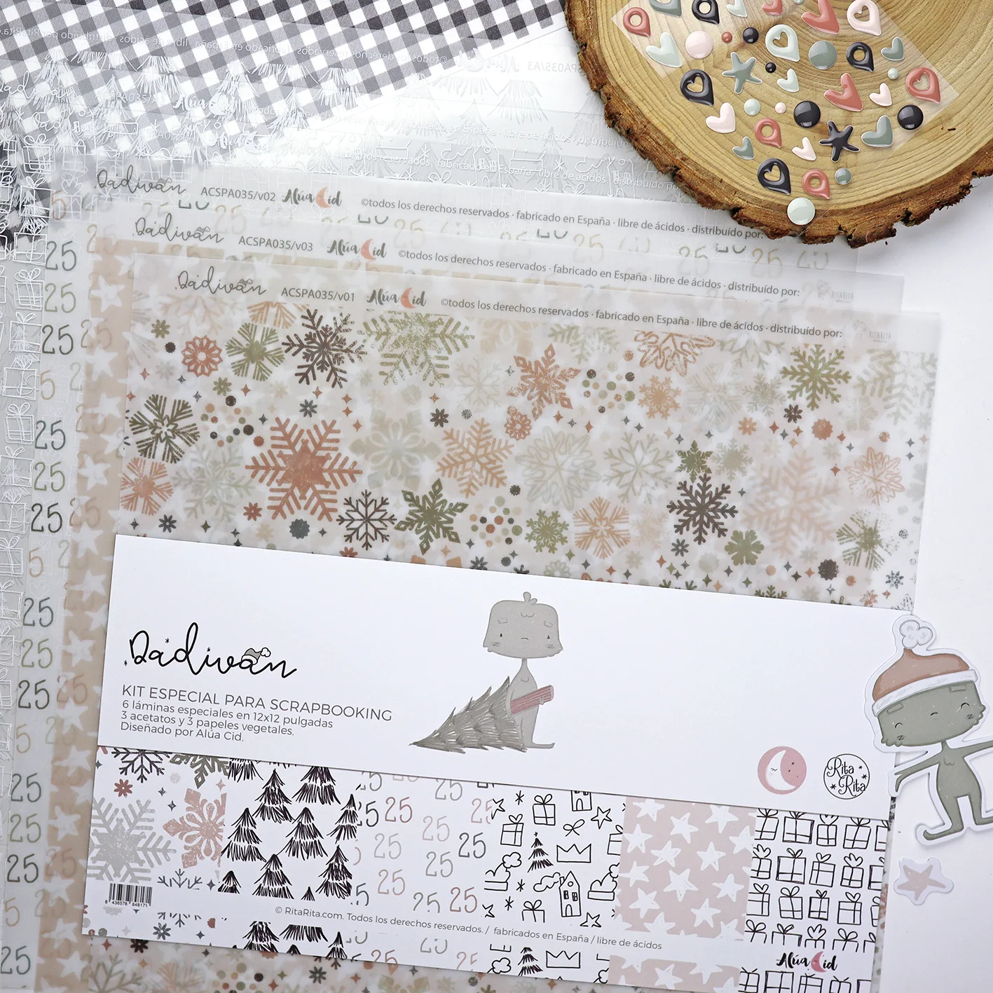En concreto este kit pertenece a la colección Dadivan, por lo que puedes añadir a los papeles muchos más complementos.