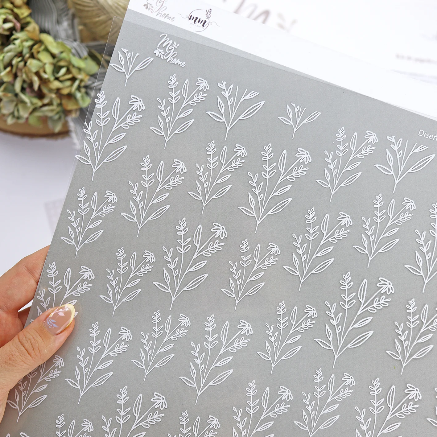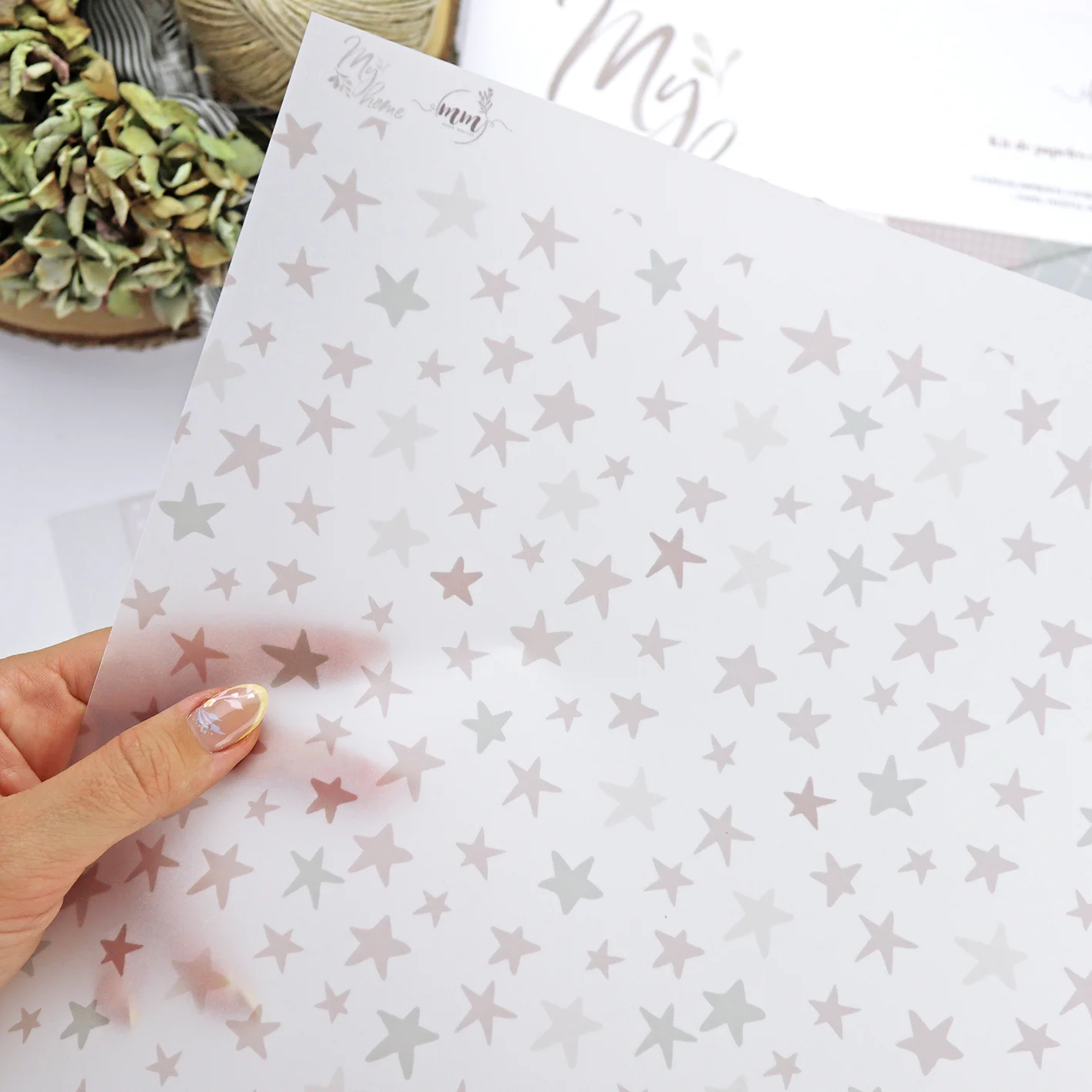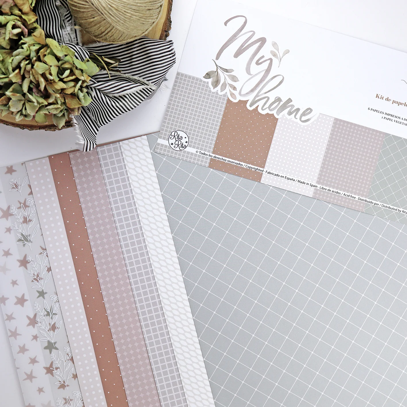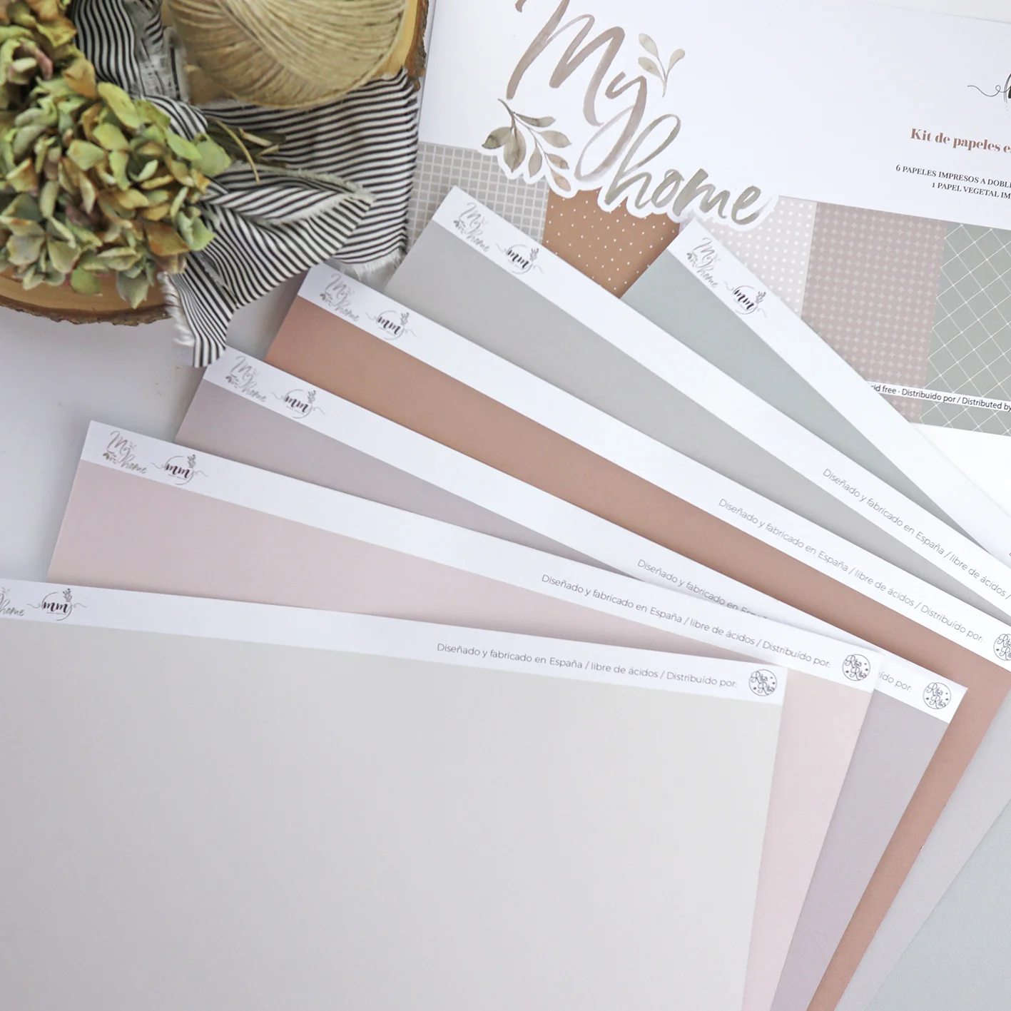 En los papeles sólidos, una de las caras es decorada y la otra lisa, para combinar con el bloc de papeles My Home, de Mamen Montero.