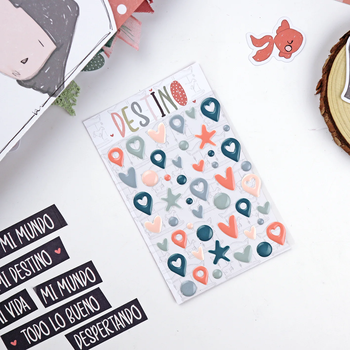 Los enamels llevan adhesivo. Solo tienes que colocarlos donde más te guste, para enfatizar o decorar tus proyectos DIY.
