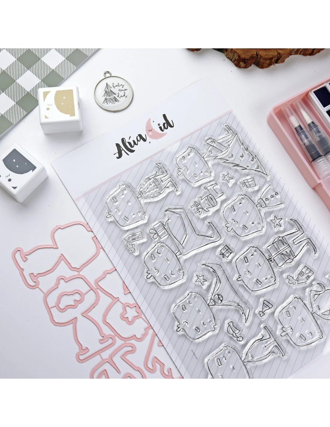 El set de sellos con troqueles Feliz Dadivan forma parte de la colección Dadivan, en la que encuentras más complementos para scrapbooking con motivos invernales y navideños.