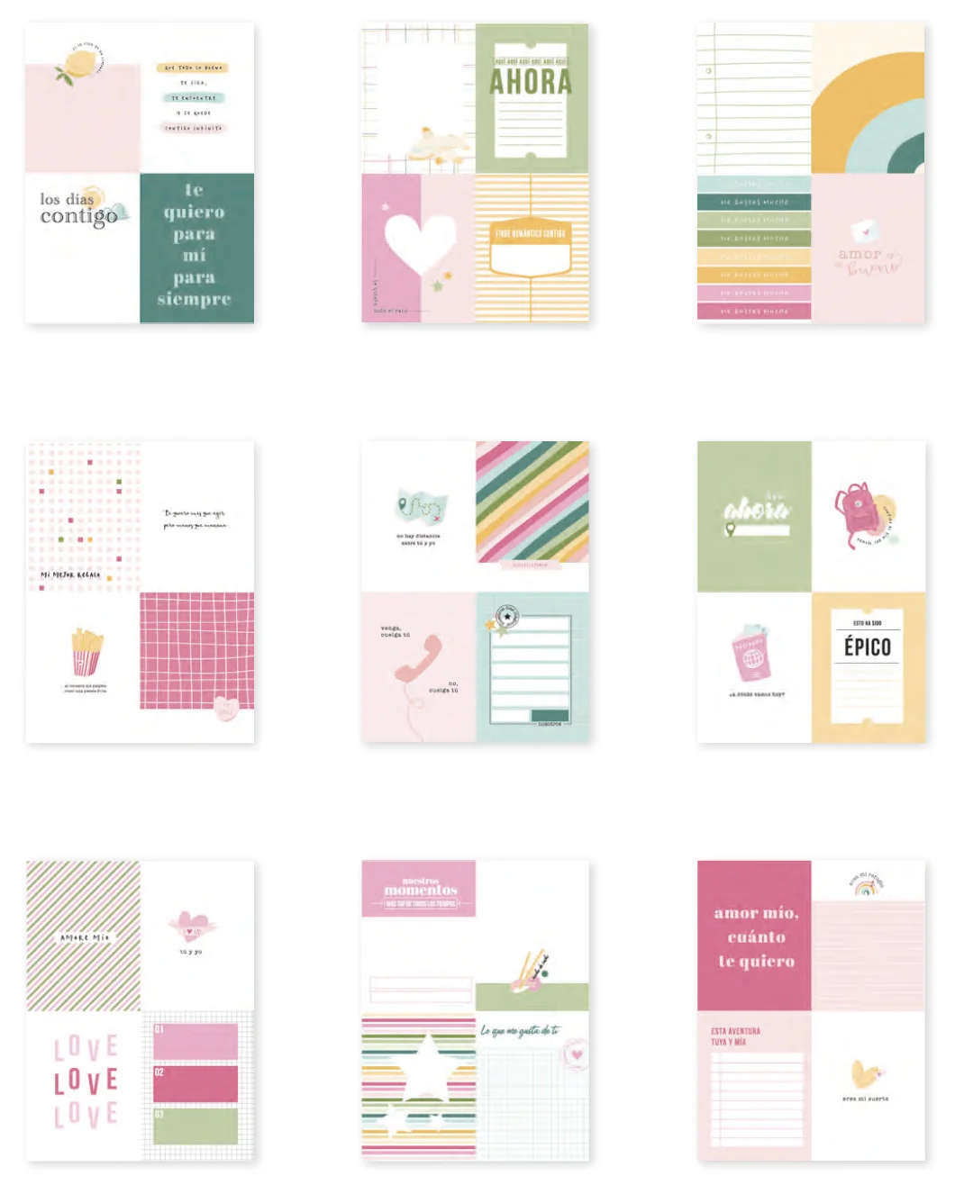 17 hojas de 15×20 cm a una cara con 107 elementos y diseños diferentes.