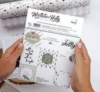 El bloc de tarjetas y sólidos Mistletoe & Holly es un producto muy especial, porque incluye papeles sólidos para acompañar al bloc de 12″ de la colección, y también lleva papeles para cortar y convertir en tarjetas para tu Rita´s Diary, o pegar en tarjetas navideñas artesanales.