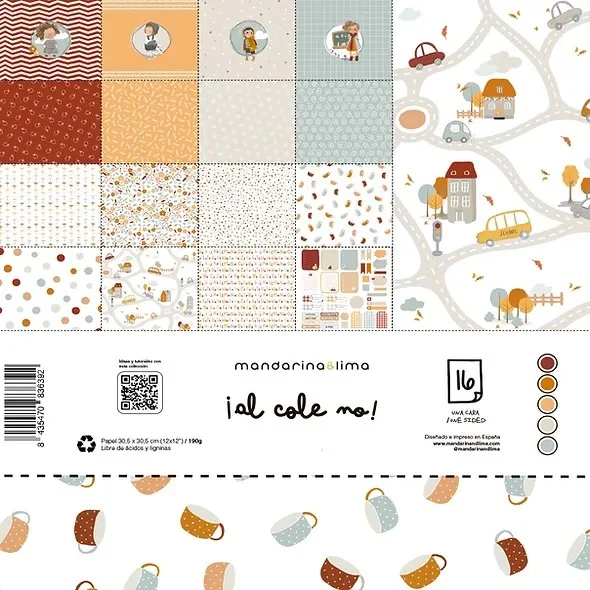 16 diseños en total con medida 30,5×30,5. Papel 190g libre de ácidos y ligninas.