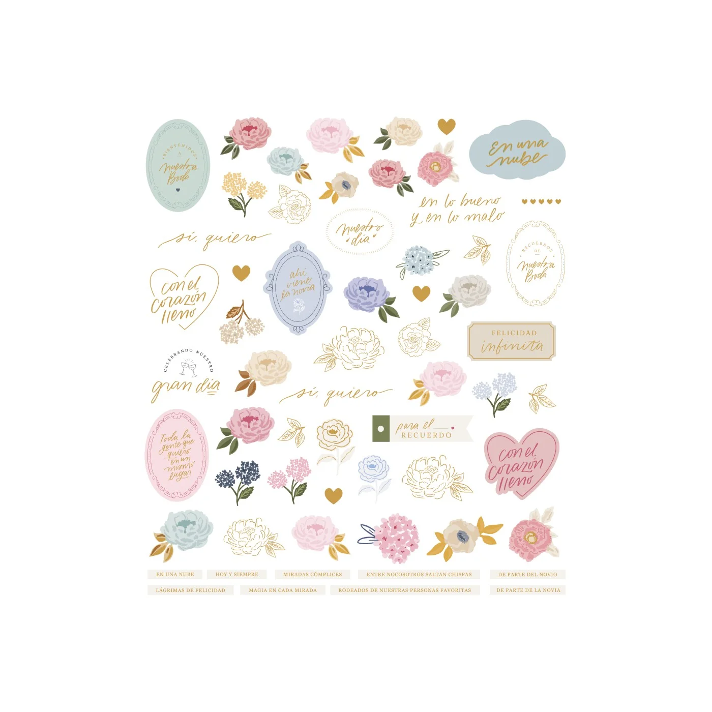 El pack consta de formas precortadas en papel offset de 300 grs con detalles en foil. El adorno favorito de la mayoría de las scraperas con el que podrás decorar todos tus proyectos.