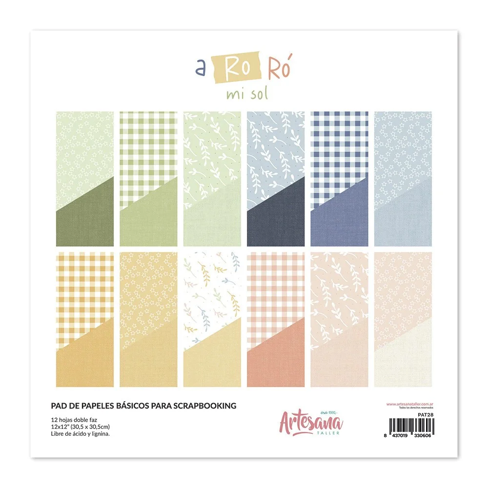 - 12 hojas de papel doble faz con diseños básicos, perfectos para tus proyectos de scrapbooking.