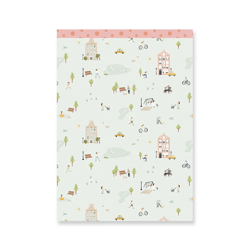 El bloc consta de 24 papeles estampados a una cara con 24 diseños diferentes.