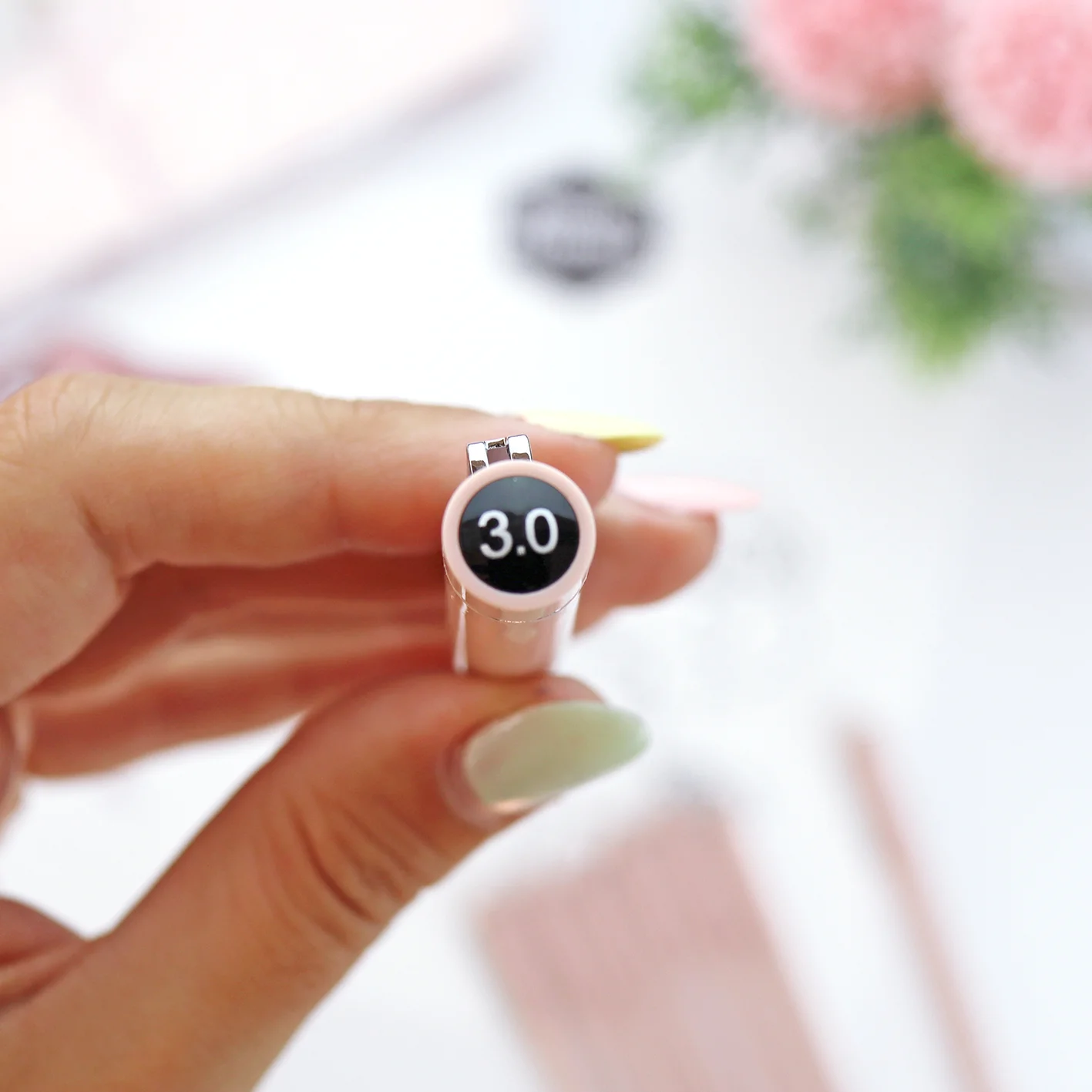 Realiza un trazo muy grueso y de alta precisión de 3,0 mm de grosor. Fíjate en la punta, porque es biselada, similar a la de un rotulador marcador tipo flúor.