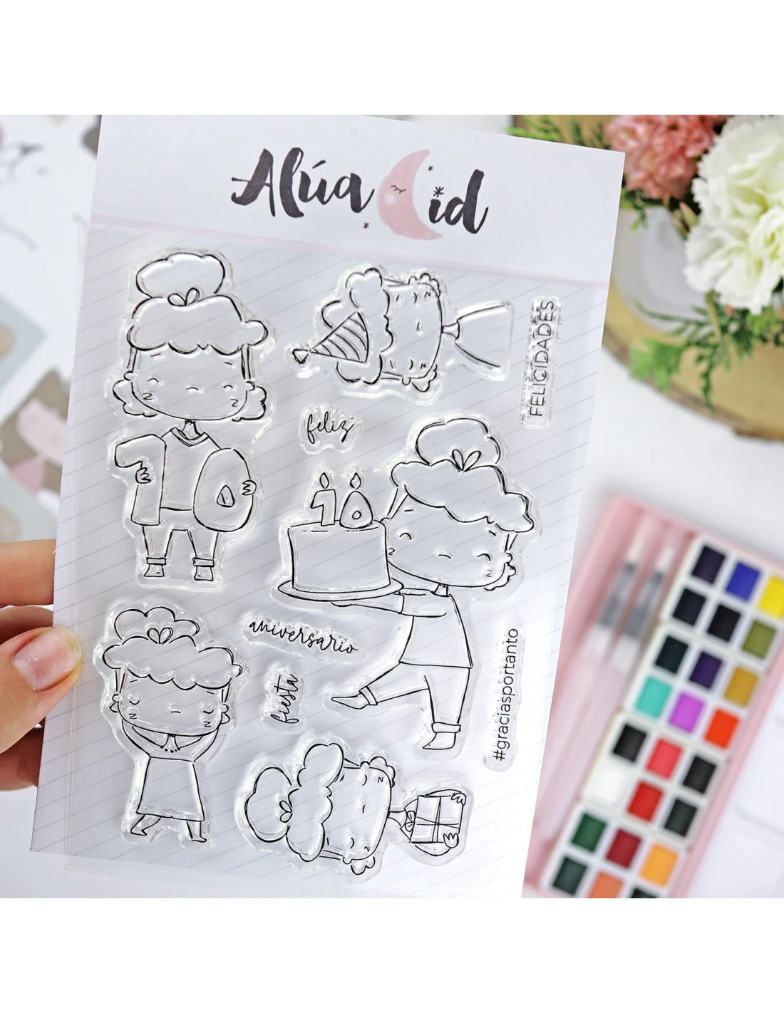 Set de sellos 10 años con Rita para usar en proyectos dedicados a celebraciones y aniversarios (en especial si cumplen una década). Lleva ilustraciones de la muñeca Rita, que está de cumpleaños.
