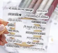 Set de sellos Algo tan nuestro para usar en diario de fotos de Navidad, crear tarjetas o etiquetas para esas entrañables fiestas. Lleva frases de sentimientos de la escrapera Mamen Montero, esas que a ella le gusta poner en su diario de fotos navideñas.