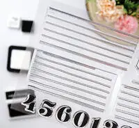 Lleva números y diseños con líneas y punteados que permiten crear un patrón sobre el que escribir. También incluye una etiqueta para estampar en positivo y negativo.