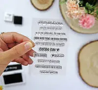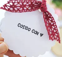 El set de sellos Palabra de costurera lleva 11 frases y palabras para estampar en etiquetas que acompañan un trabajo de costura.